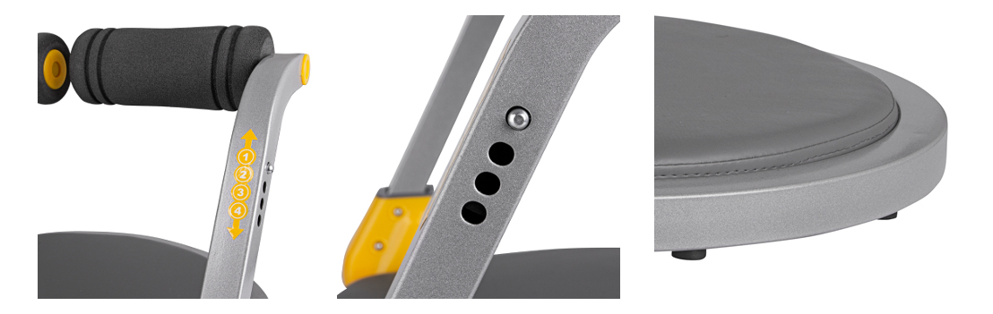 L'AB Trainer vous aidera à exercer vos abdos. Cette chaise romaine de musculation est parfaite pour les débutants qui trouvent souvent les exercices d'abdominaux difficiles. Mais cette station à abdominaux convient également à ceux qui recherchent un outil qui offrirait plus d'options d'exercice et rendrait donc leur entraînement plus polyvalent. Cette machine de musculation vous aidera à faire les exercices correctement, garantissant un chargement optimal de l'articulation, du dos et de la colonne vertébrale. Les deux bras de la machine en mouvement sont plus que suffisants, vous pouvez non seulement faire du gainage, mais aussi des abdominaux simples, des pompes régulières mais aussi travailler les biceps et les pompes triceps, les coups de pied de ciseaux ou d'autres exercices de ce type.