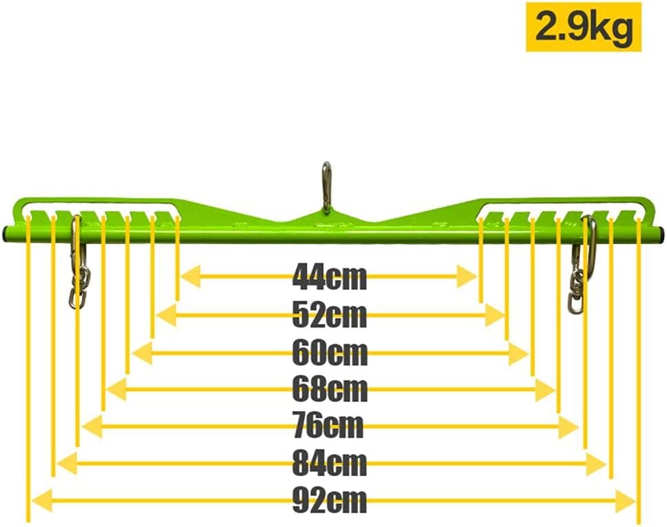 Avec cette longue barre, vous pouvez étendre la gamme d'utilisations de vos poignées de tirage, qui peuvent être accrochées dans les ouvertures prévues dans la longue barre avec les deux mousquetons de sécurité fournis, afin qu'elles puissent également être fixées à un seul câble. Chaque côté de la barre longue offre sept ouvertures, de sorte que la portée peut être ajustée en fonction de vos besoins, ce qui permet un réglage rapide sans ouvrir le mousqueton de sécurité.