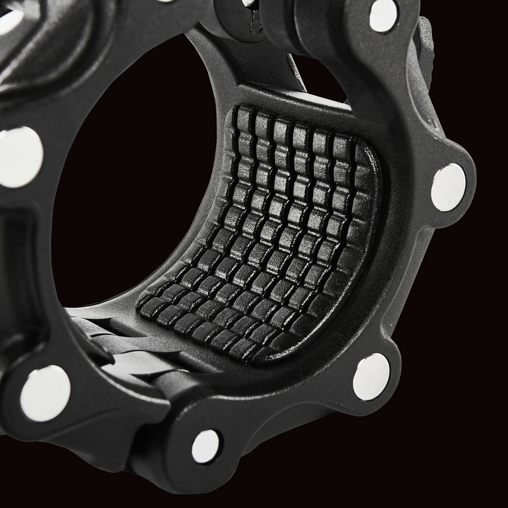 Le design très antidérapant avec moyeu en caoutchouc intérieur assure une stabilité maximale lors de vos séances de musculation, et le plastique robuste confère durabilité et résistance à ces colliers de verrouillages ATX.