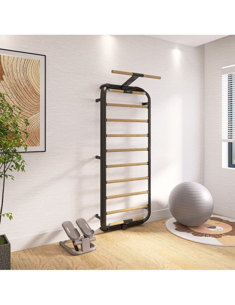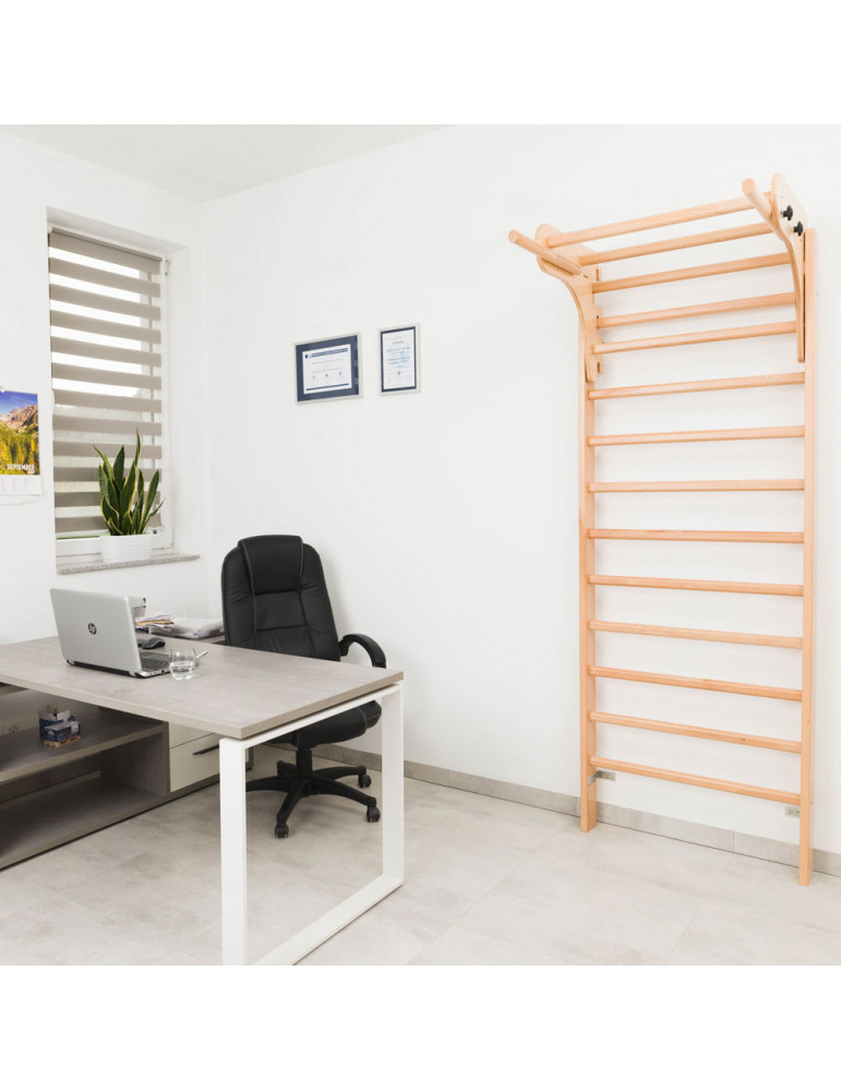 Les espaliers aussi appelés échelle de gymnastique se composent d'une structure en bois ou en métal à fixer au mur avec des barreaux horizontaux disposés à intervalles réguliers.