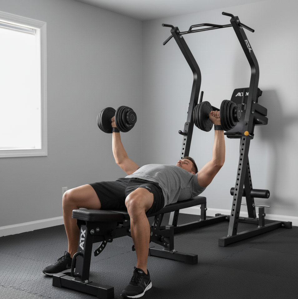 Le banc d'entraînement ajoute de la stabilité, de la sécurité et ouvre des possibilités infinies. C’est une pièce centrale pour structurer un home gym efficace, car il multiplie les exercices réalisables avec un encombrement minimal.