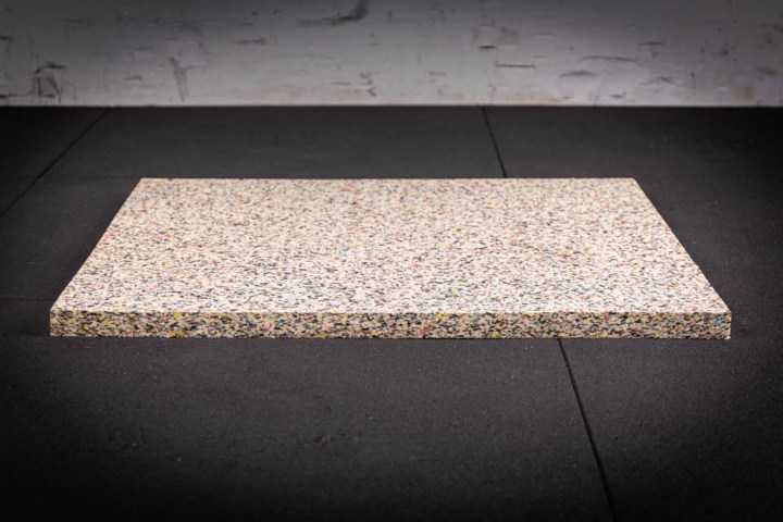La mousse anti-vibration, qui est également le composant principal des Shields, est vendue en grandes feuilles de 1 × 1 m. Pour de meilleurs résultats, nous vous recommandons de placer les dalles de mousse sous le sol en caoutchouc. Cela réduira davantage toutes les vibrations et le bruit des poids qui tombent au sol.