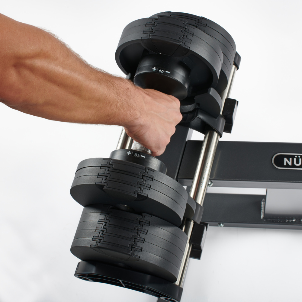 Disponible en graduation de 2g ou de 4 kg, les haltères Nuobells disposent d’une charge comprise entre 2 et 32 kg et sont vendus par paires. Une fois posés, leur socle de sélection vous permettra de conserver uniquement les charges dont vous avez besoin idéal pour un entrainement mesuré et progressif, il s’agit d’un des modèles de dumbbells les plus en vu du moment.