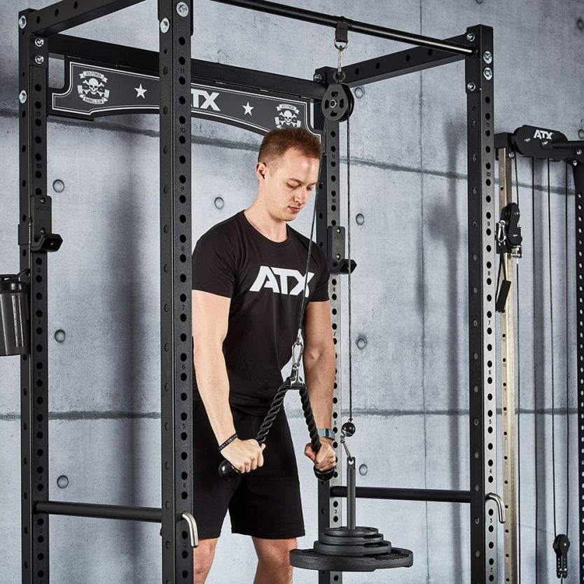 ATX a trouvé la solution parfaite en proposant un poste à poulie avec fixation par sangles à installer directement sur la barre de traction de votre structure.