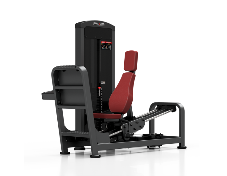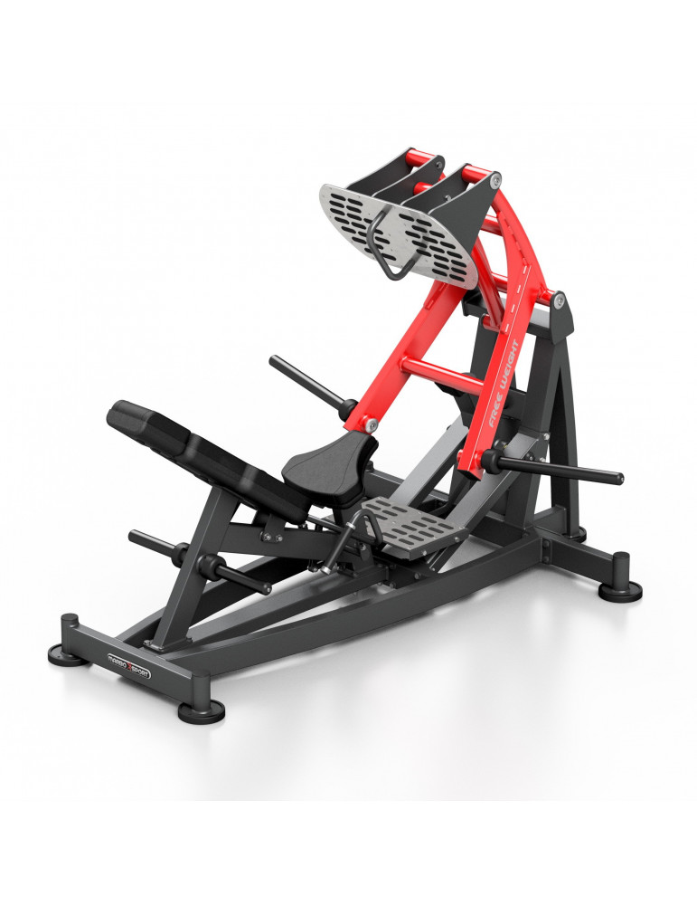 L'exercice s’effectue à travers des mouvements de flexion / extension en position inclinée les pieds à plat sur une plaque antidérapante connectée à des disques de poids ce qui vous permettra de pousser la charge désirée.