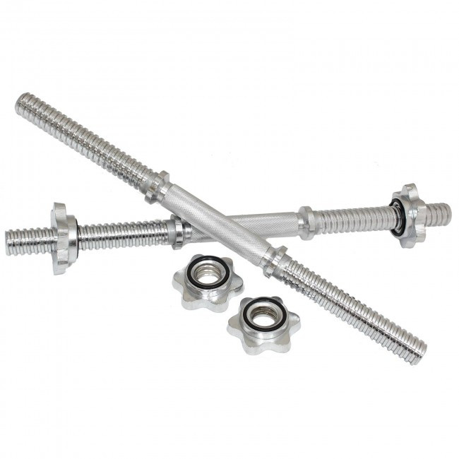 Reçu 2 barres et 4 colliers de serrage. Barre + 2 colliers de serrage = 2.0 kg Barre = 45 cm Longueur de la partie repose poids = 15 cm Le diamètre de la barre qui est de 25 mm n'est pas très gênant pour les disques d'un diamètre supérieur (28 mm pour ma part) les colliers de serrage maintiennent correctement le tout malgré un léger jeu. Possibilité de mettre 5 disques de 5 kg de chaque côtés de l'haltere en position verticale pour un total de 52 kg.