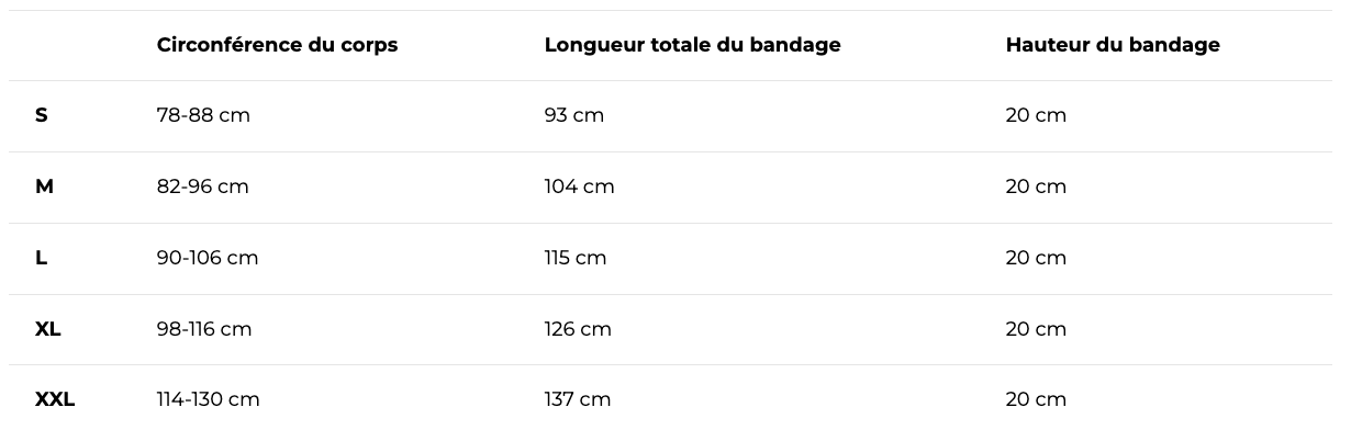 Guide des tailles de la ceinture lombaire magnétique en bambou pour les douleurs et la mobilité du bas du dos