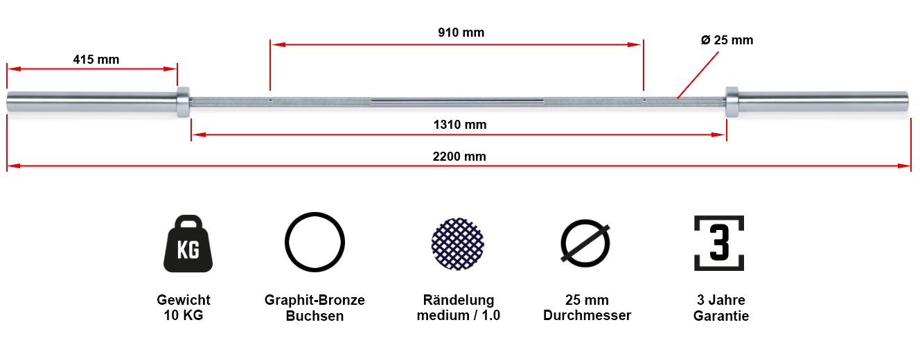 Caractéristiques techniques de la weightlifting bar de 10 kg pour débutants et jeunes sportifs :