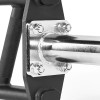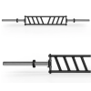 La barre angulaire multi-prise de musculation est équipée de manchons de 50 mm chromés, d’une longueur utile de 335 mm, compatibles avec tous les disques de poids de diamètre olympique.