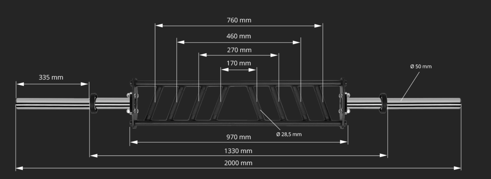 Elle propose quatre largeurs de préhension (17, 27, 46 et 76 cm), permettant une grande variété d’exercices et une adaptation parfaite aux besoins de chaque athlète.