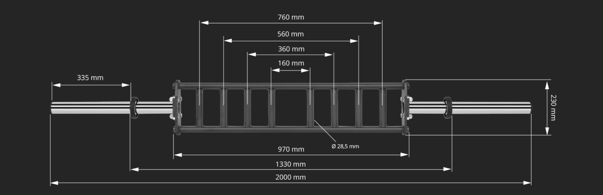 Avec ses 200 cm de longueur et sa compatibilité avec les racks ou étagères d’une largeur de 1150 à 1240 mm, cette barre multi-grip parallèle s’adapte à une large gamme d’équipements et de bancs universels.