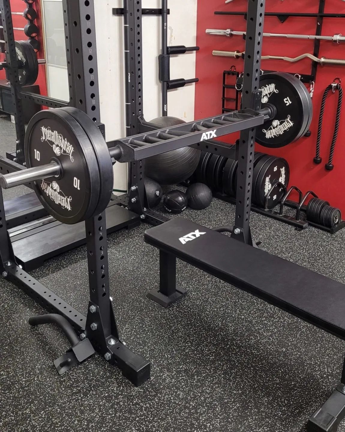 La salle est équipée des dernières technologies en matière d'équipement de powerlifting ATX, soigneusement sélectionnées pour répondre aux besoins spécifiques des passionnés de cette discipline.