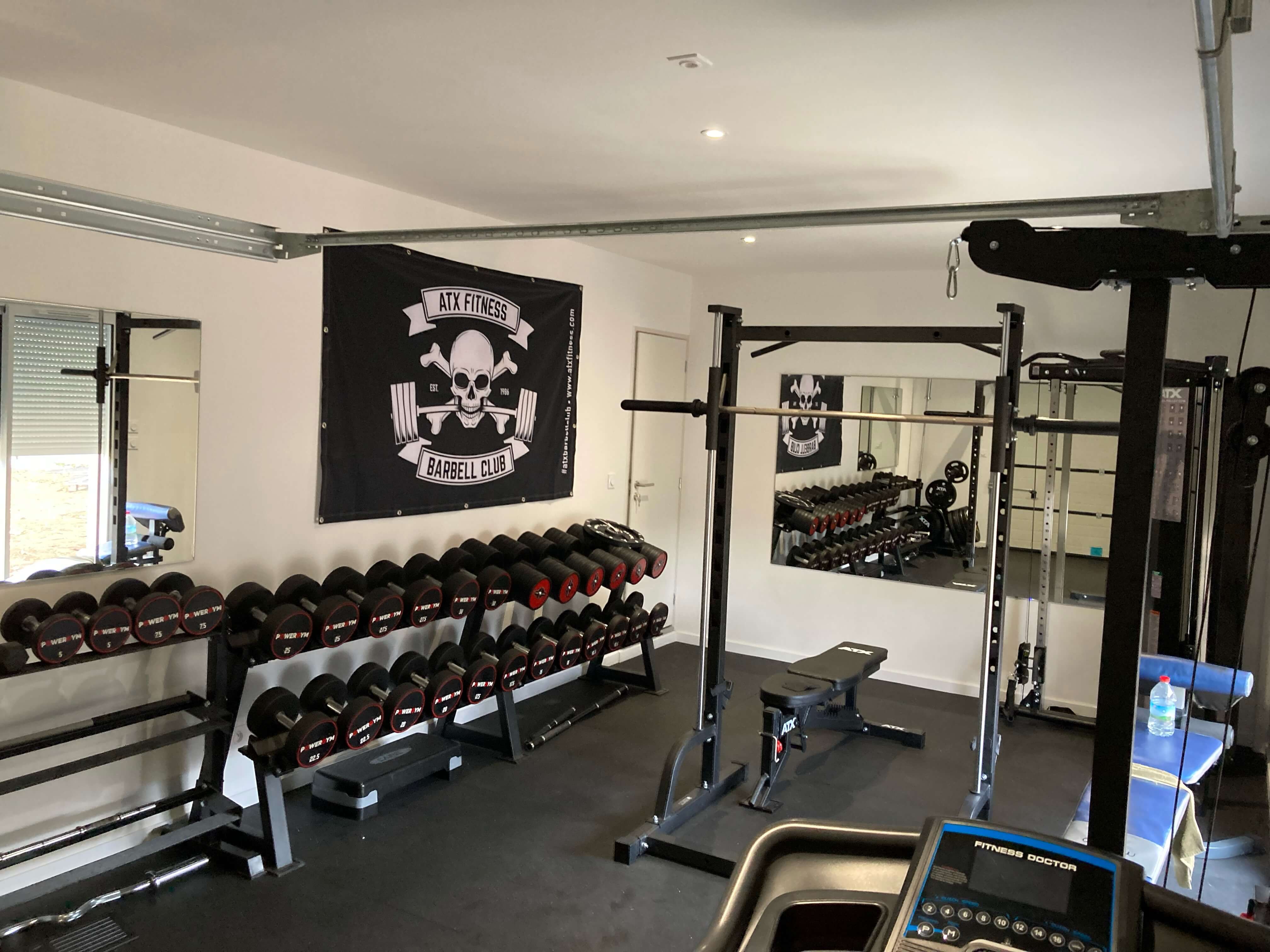 Ce Home-Gym privé est également équipé d'une station 5 en 1 ATX Multiplex, un rack de rangement pour barre olympique et d'un support de stockage pour les poids de musculation.