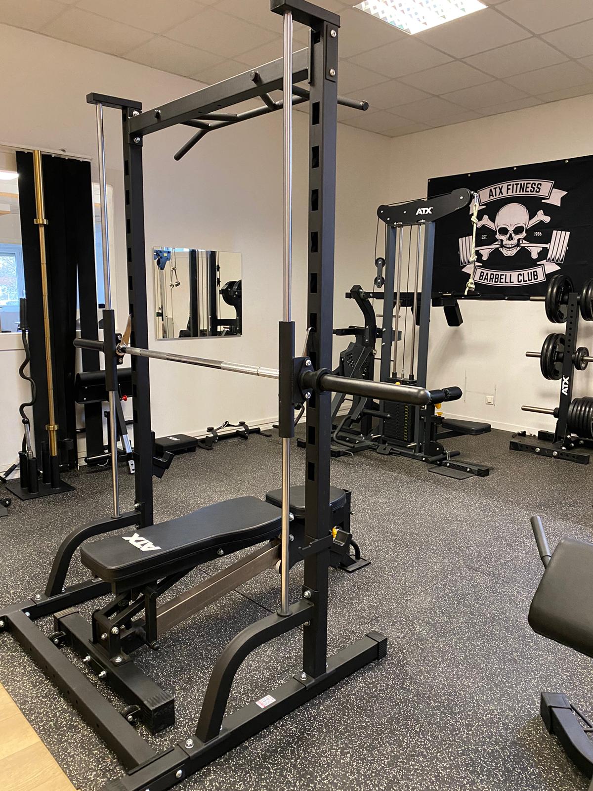 Comme le démontre cette photo, la Smith Machine Multipress de la marque ATX suffit amplement pour se créer un espace d'entraînement à domicile ! Grâce à ses dimensions compactes, la Smith Machine complète n'encombrera pas votre domicile en l'installant simplement sur votre palier !