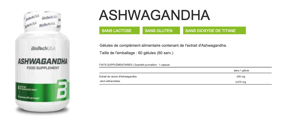 Conseils de consommation du supplément nutritionnel à base d'ashwagandha de marque Biotech USA pour les athlètes sportifs