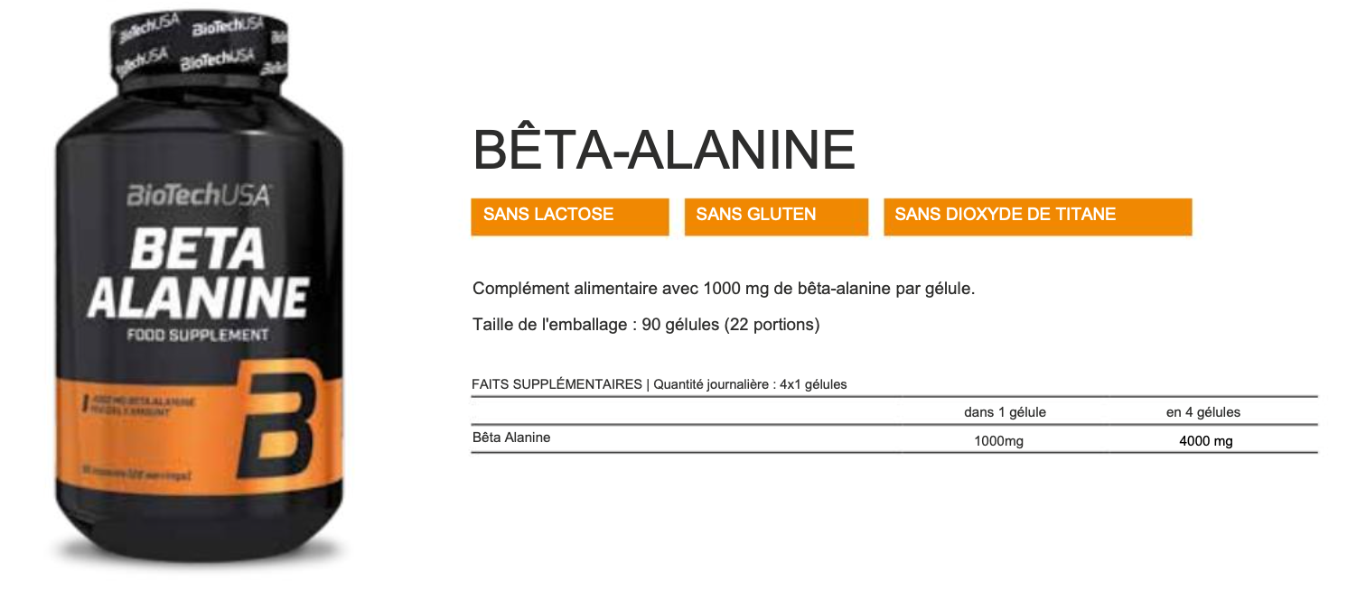 Disponibles en pot de 90 gélules ou en poudre 300 g, la bêta-alanine est très appréciés des pratiquants et des pratiquantes de sports divers, mais plus particulièrement des culturistes pour les nombreux bienfaits corporels qu'offre l'acide aminé de bêta-alanine à ses consommateurs.