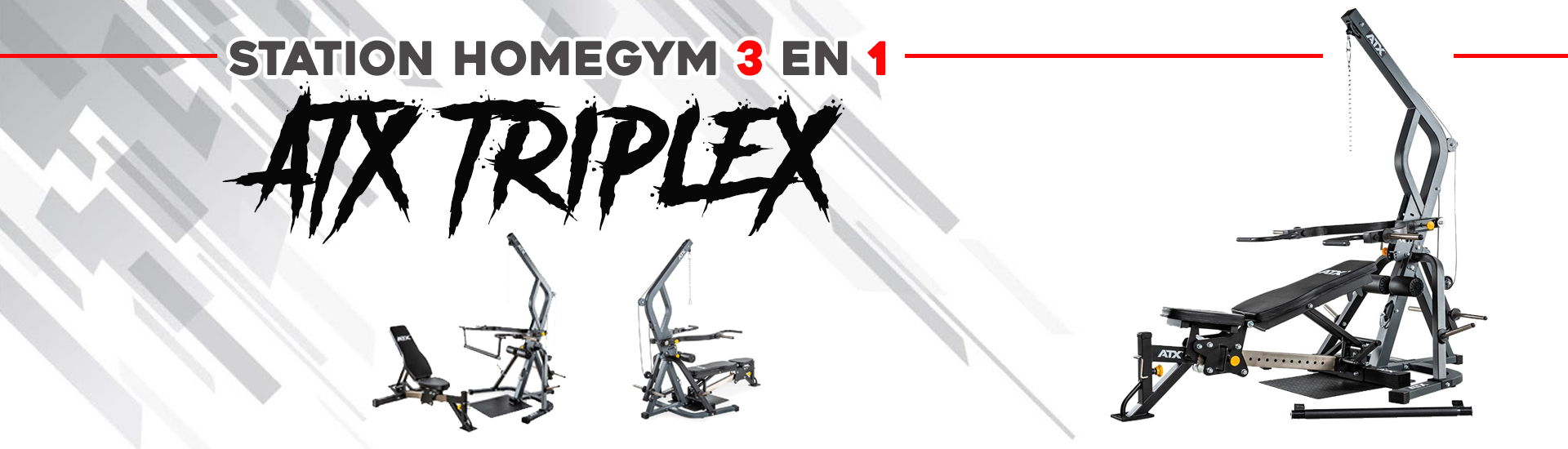 Retrouvez les appareils de musculation les plus célèbres réunis dans un seul appareil avec la Triplex multifonctions pour séances d'entraînement en Homegym.