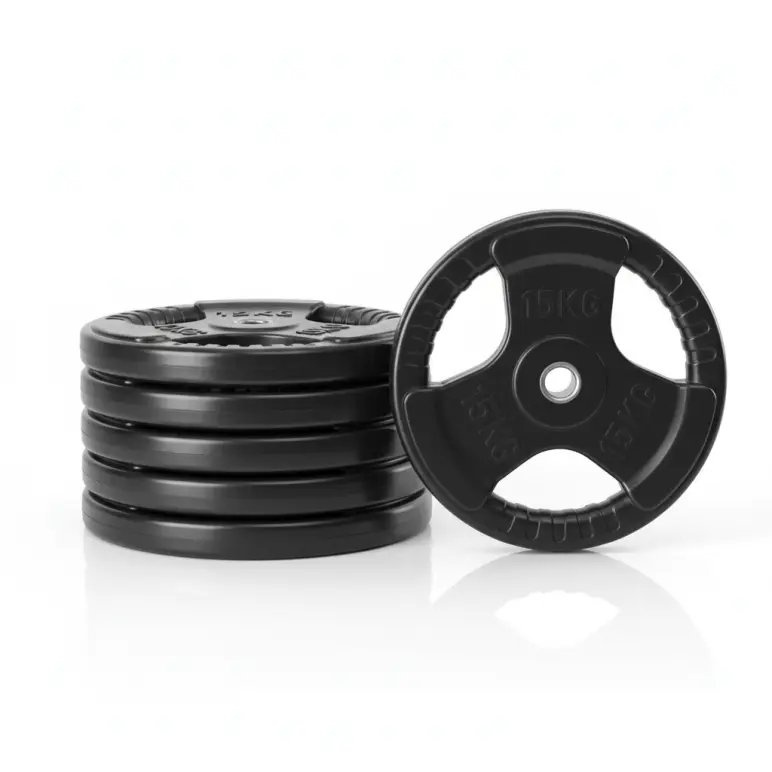 Set de poids standard 80 kg avec revêtement en caoutchouc et 3 poignées