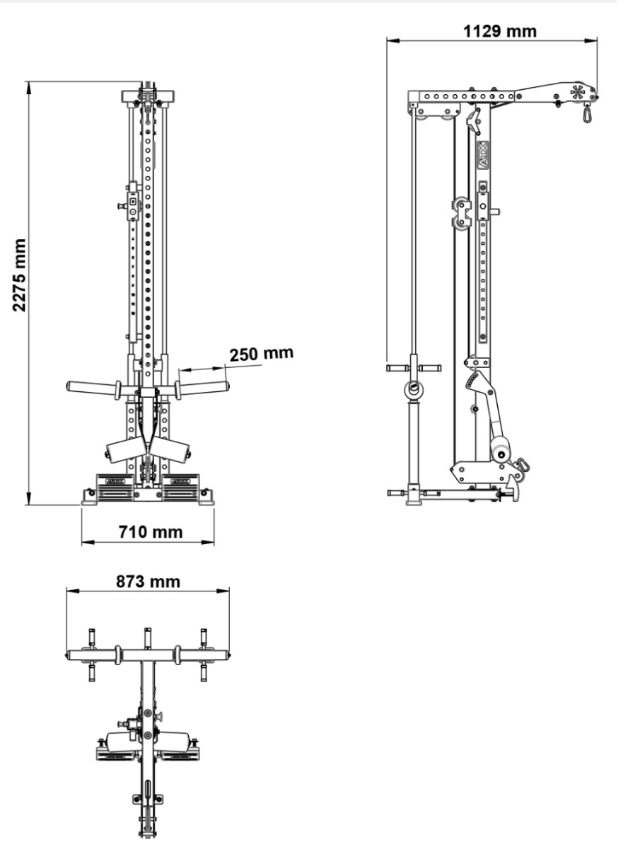 Caractéristiques techniques du poste à poulie haut et bas à charge libre ATX à capacité de charge 150 kg