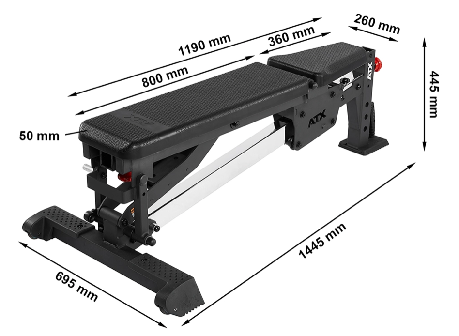 Caractéristiques techniques du banc de musculation ATX certifié avec supports à options à capacité de charge 500 kg :
