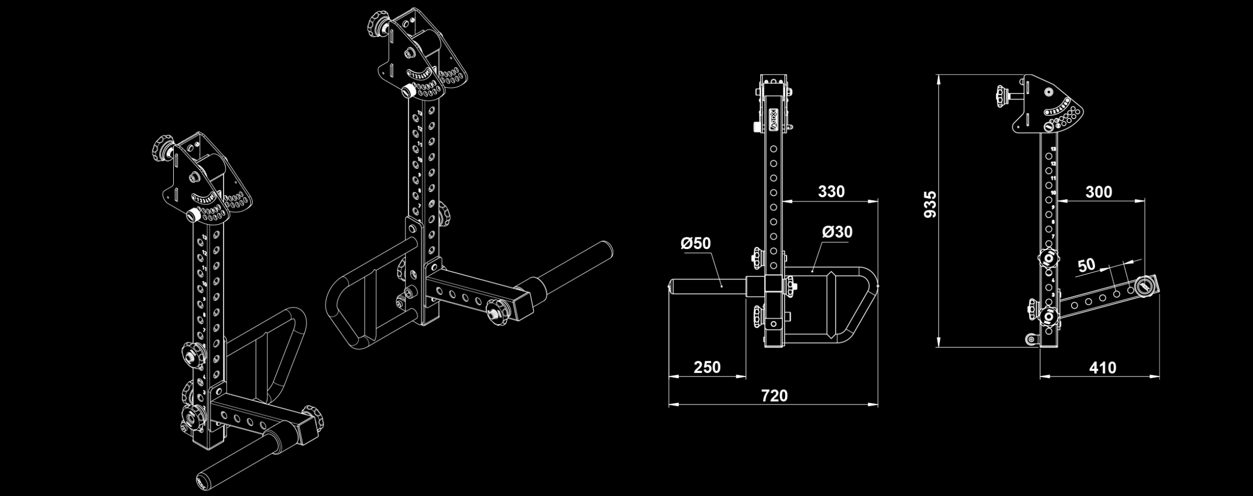 Bras de levier convergents ATX pour rack série 600 à capacité de charge 300 kg - Jammer arms multi-réglables