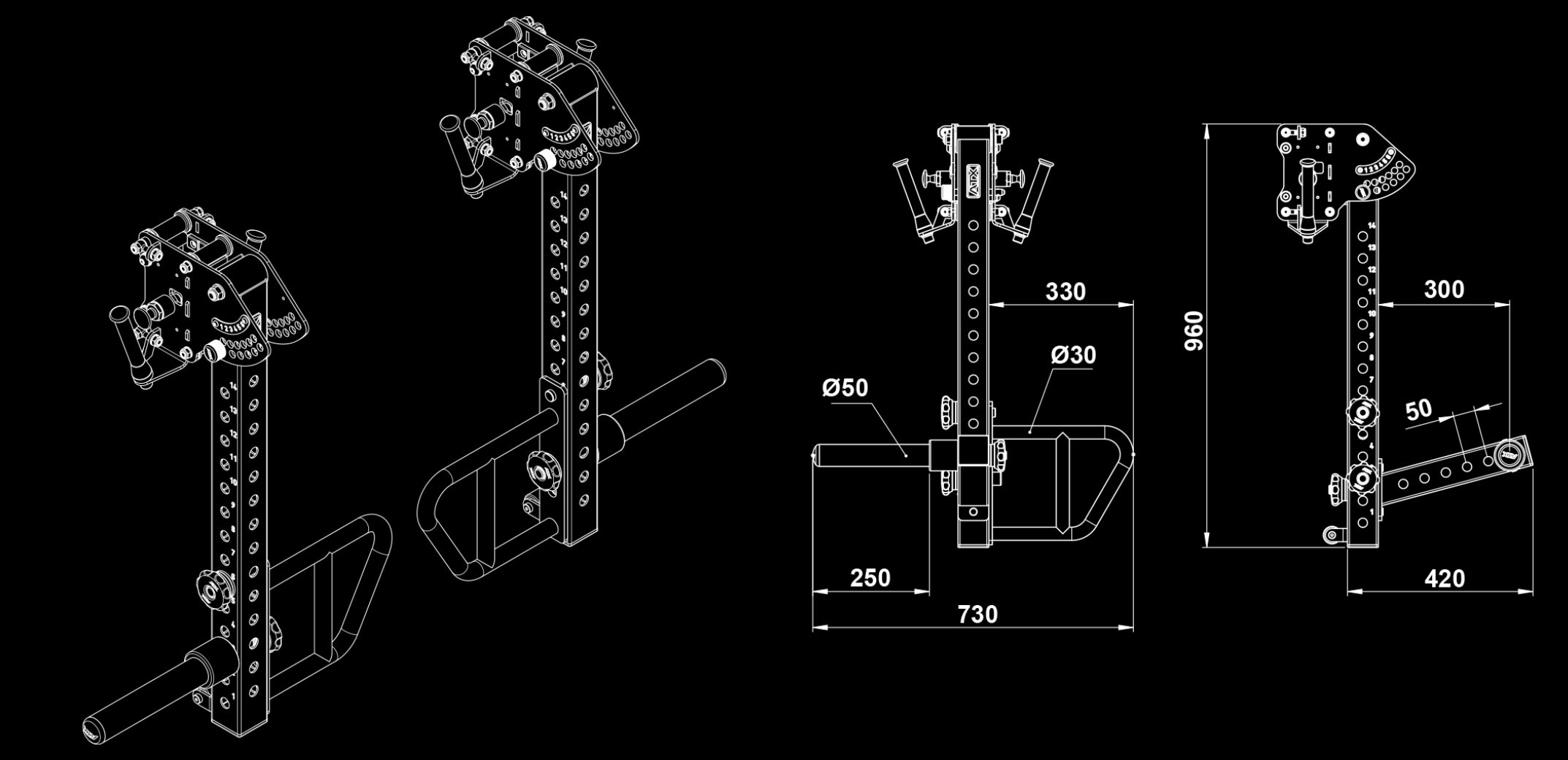 - Diamètre Poignée : Ø 30 mm / Support de disque d'haltères Ø 50 mm