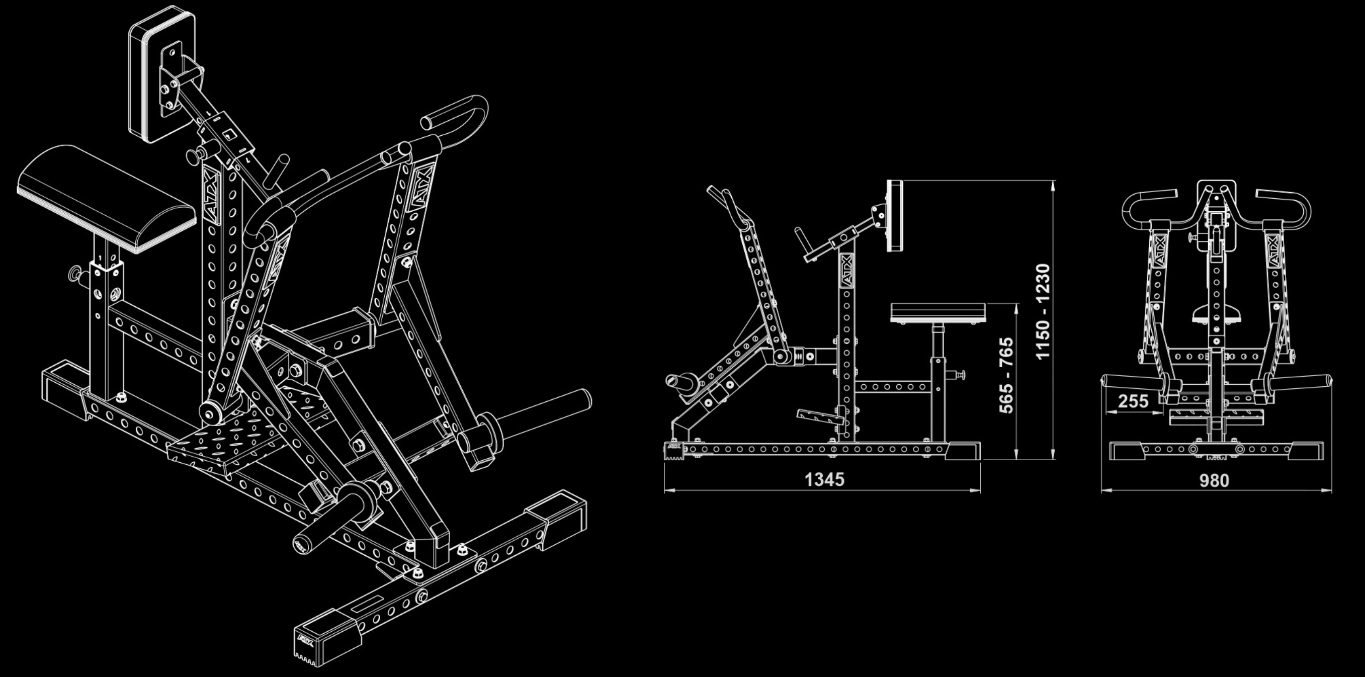 Caractéristiques techniques de la Machine ATX Side Row à charge libre avec bras de levier indépendants et assise ajustable :