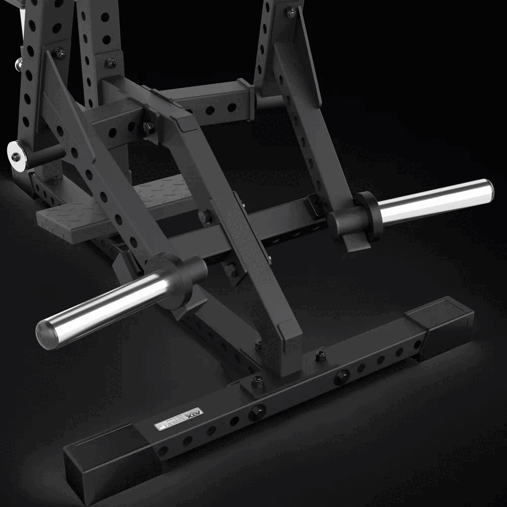 La plaque de repose-pieds inclinée à 10 degrés avec rainures antidérapantes assure une assise stable et sécurisée. Chaque bras de levier fonctionne de manière unilatérale, permettant une contraction maximale et la correction des déséquilibres musculaires.