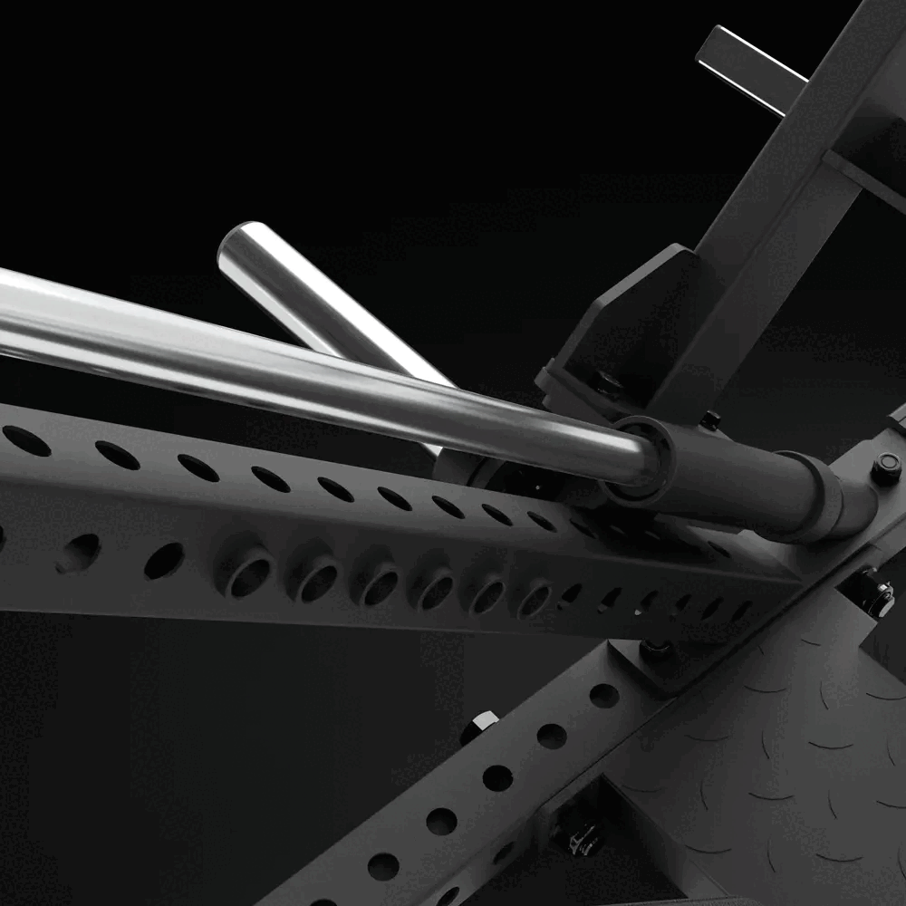 Cette linear bent over row machine est également pensée pour la stabilité et la sécurité : les plaques de repose-pieds des deux côtés en tôle antidérapante garantissent une position solide, tandis que les support de disque Ø 50 mm permettent de charger l'incline row machine facilement et en toute sécurité.