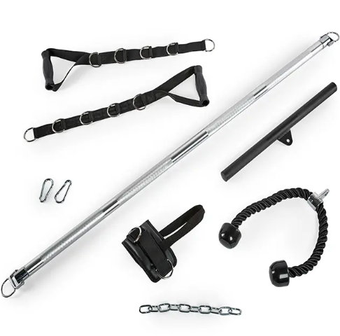 Cette station de tirage à poulie double est fournie avec une kit de 5 poignées de tirage :