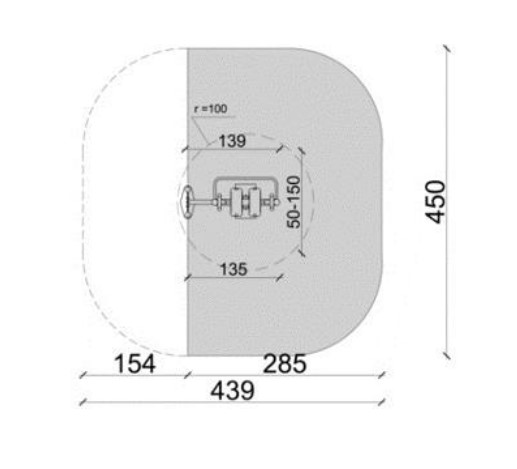 Un périmètre de sécurité de 439 x 450 cm doit être installé autour de l'équipement de conditionnement physique avec des dalles de sol en caoutchouc normées et adaptées. Ainsi, vos citoyens pourront s'exercer en totale sécurité.