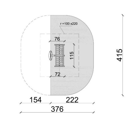 De plus, pour accentuer le critère de sécurité, vous devez en tant que commune impérativement choisir du revêtement de sol aux normes et créer un périmètre de sécurité. La zone de sécurité autour de cette station de musculation extérieure doit mesurer 376 x 415 cm.