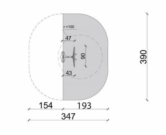 Pour accentuer le critère de sécurité de votre agrès de fitness, il est nécessaire d'installer du revêtement de sol aux normes autour de votre matériel. Ici, pour la roue à épaules outdoor, il faut compter un périmètre de sécurité de 347 x 390 cm.