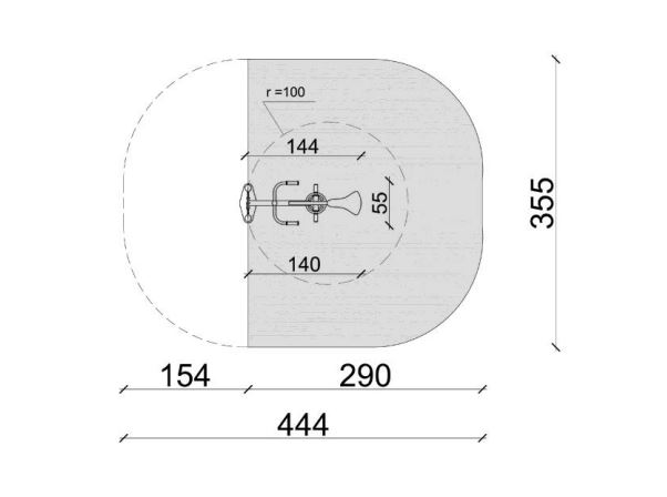 - Zone de sécurité : 444 x 355 cm