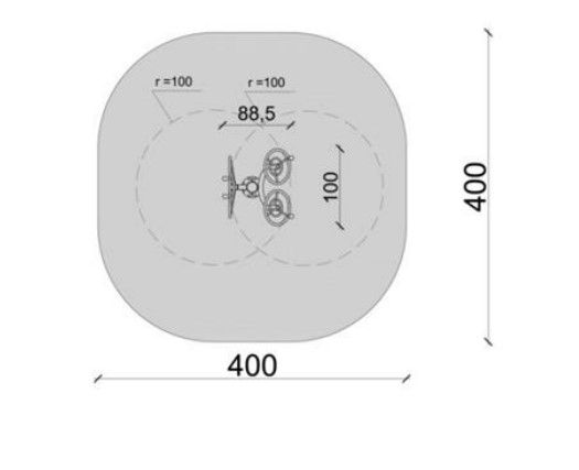 De plus, pour accentuer le critère de sécurité, vous devez en tant que commune impérativement choisir du revêtement de sol aux normes et créer un périmètre de sécurité. La zone de sécurité autour de cet atelier de sport pour dorsaux et épaules doit mesurer 400 x 400 cm.
