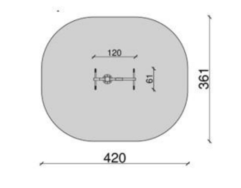 Pour accentuer le critère de sécurité de votre double atelier de musculation pour parcours santé, il est nécessaire d'installer du revêtement de sol aux normes autour de votre matériel. Ici, pour la station de fitness pour personnes en fauteuil roulant, il faut compter un périmètre de sécurité de 420 x 361 cm.