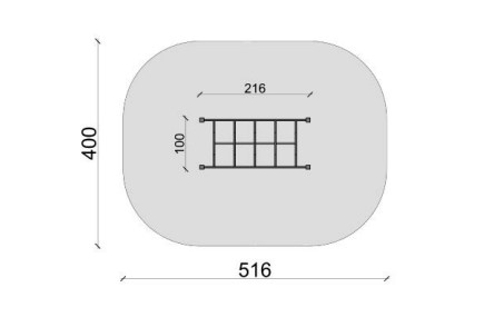 Pour une sécurité optimisée, il faut absolument prévoir une surface autour de votre équipement sportif extérieur avec du revêtement de sol adapté et norme afin d'éviter les chocs et les accidents. Pour cet appareil de fitness, la zone de sécurité doit présenter les dimensions suivantes : 400 x 516 cm.