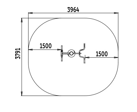 Autour de votre structure d'entraînement en plein air, vous devez absolument intégrer une zone d'impact autour de votre équipement afin d'assurer une sécurité optimale. Pour cet équipement de musculation pour PMR, la zone de sécurité avec sol adapté doit faire : 3,69 m x 3,79 m.