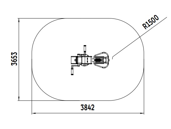 Autour de votre structure d'entraînement en plein air, vous devez absolument intégrer une zone d'impact autour de votre équipement afin d'assurer une sécurité optimale. Pour le vélo à main outdoor, la zone de sécurité avec sol adapté doit faire : 3,65 m x 3,84 m.