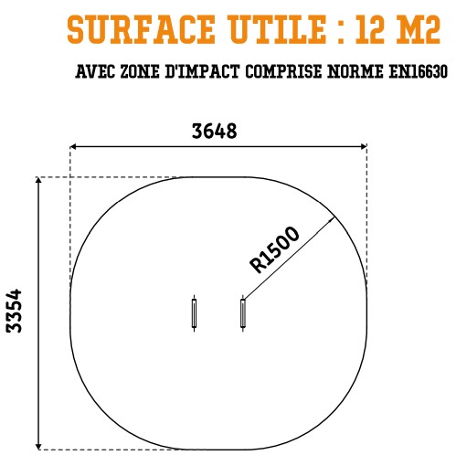 Autour de votre structure d'entraînement de cross-training en plein air, vous devez absolument intégrer une zone d'impact autour de votre équipement afin d'assurer une sécurité optimale. Pour l'agrès de street workout extérieur, la zone de sécurité avec sol adapté doit faire 12 m².