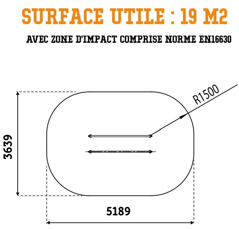 Autour de votre structure d'entraînement de cross-training en plein air, vous devez absolument intégrer une zone d'impact autour de votre équipement afin d'assurer une sécurité optimale. Pour l'agrès de street workout extérieur, la zone de sécurité avec sol adapté doit faire 19 m².