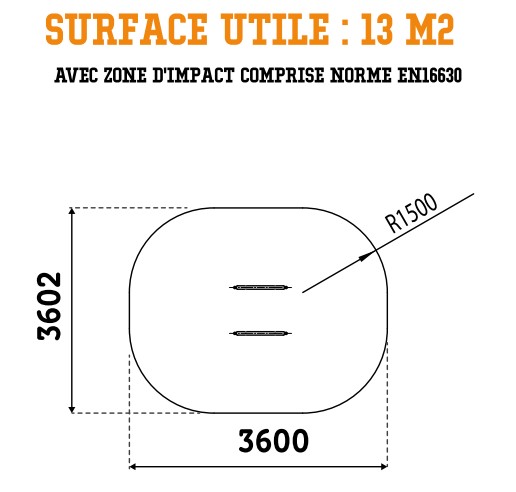 Autour de votre structure d'entraînement de cross-training en plein air, vous devez absolument intégrer une zone d'impact autour de votre équipement afin d'assurer une sécurité optimale. Pour l'agrès de street workout extérieur, la zone de sécurité avec sol adapté doit faire 13 m².