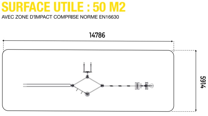 Autour de votre portique de fitness multipostes, vous devez absolument intégrer une zone d'impact autour de votre équipement afin d'assurer une sécurité optimale. Pour l'agrès de street workout extérieur, la zone de sécurité avec sol adapté doit faire 50 m².