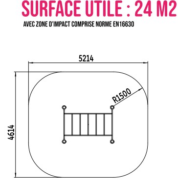 Autour de votre structure d'entraînement de promenade sportive en plein air, vous devez absolument intégrer une zone d'impact autour de votre équipement afin d'assurer une sécurité optimale. Pour le circuit sportif extérieur, la zone de sécurité avec sol adapté doit faire 24 m².