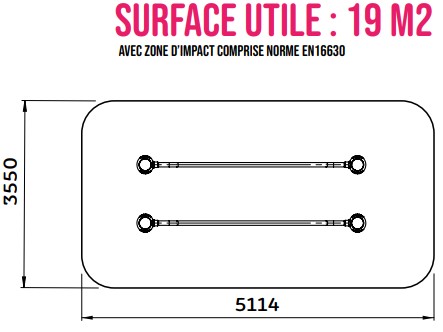 Autour de votre structure d'entraînement de promenade sportive en plein air, vous devez absolument intégrer une zone d'impact autour de votre équipement afin d'assurer une sécurité optimale. Pour le circuit sportif extérieur, la zone de sécurité avec sol adapté doit faire 19 m².