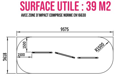 Autour de votre structure pour parcours santé, vous devez absolument intégrer une zone d'impact autour de votre équipement afin d'assurer une sécurité optimale. Pour la triple poutre d'équilibre en plein air, la zone de sécurité avec sol adapté doit faire 39 m².