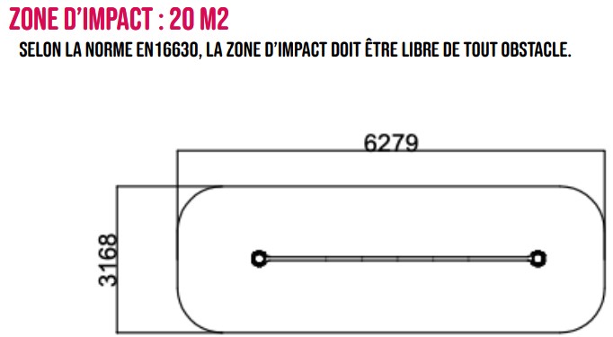 Autour de votre structure d'entraînement de promenade sportive en plein air, vous devez absolument intégrer une zone d'impact autour de votre équipement afin d'assurer une sécurité optimale. Pour le module de test de détente en plein air, la zone de sécurité avec sol adapté doit faire 20 m².