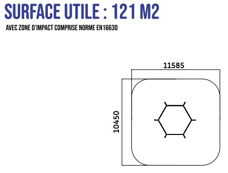 Autour de votre octogone de boxe équipé en plein air, vous devez absolument intégrer une zone d'impact autour de votre équipement afin d'assurer une sécurité optimale. Pour l'agrès de MMA extérieur, la zone de sécurité avec sol adapté doit faire 121 m².