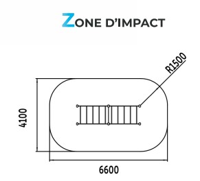 Autour de votre structure d'entraînement pour sénior en plein air, vous devez absolument intégrer une zone d'impact autour de votre équipement afin d'assurer une sécurité optimale. Pour le pont de motricité, la zone de sécurité avec sol adapté doit faire 4.10 x 6.60 mètres.