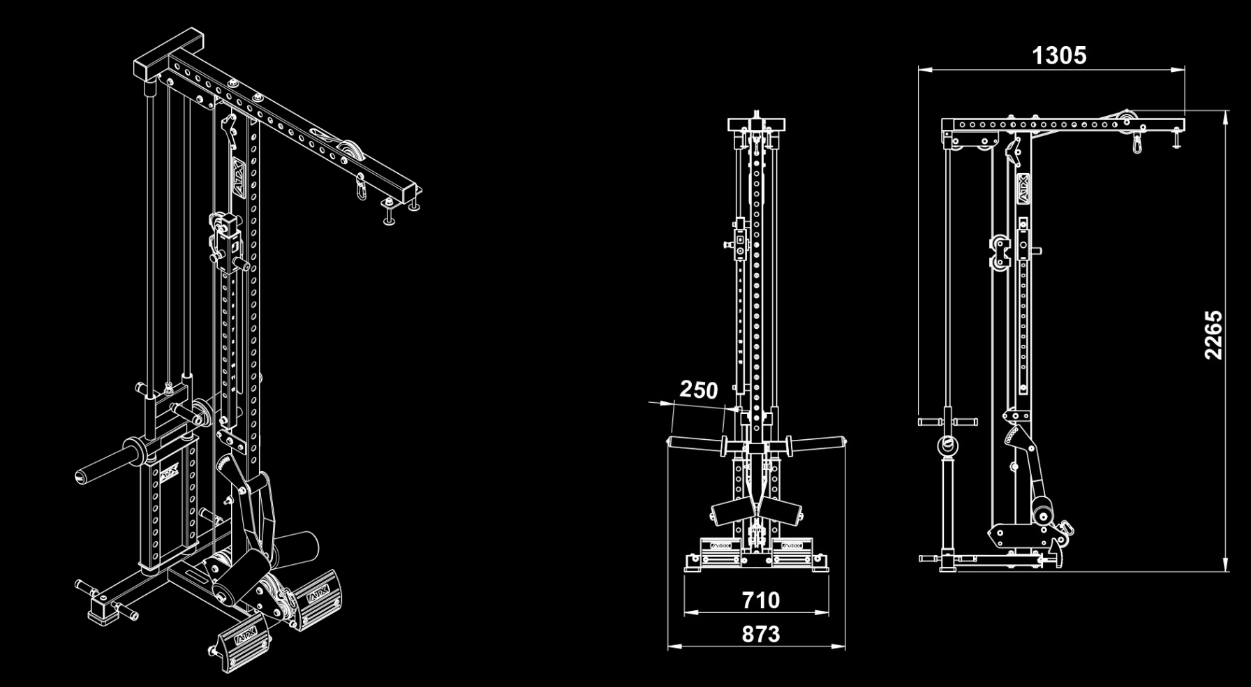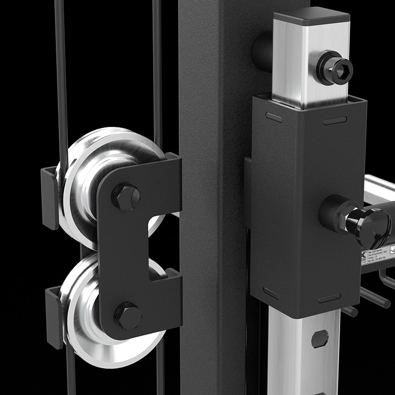 Grâce à une structure en acier renforcé 70 x 70 x 3 mm avec finition noire mate poudrée, la poulie offre une stabilité optimale, même sous forte charge, et s’intègre parfaitement à votre station multipresse ATX sans besoin de fixation au sol.